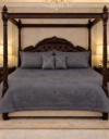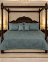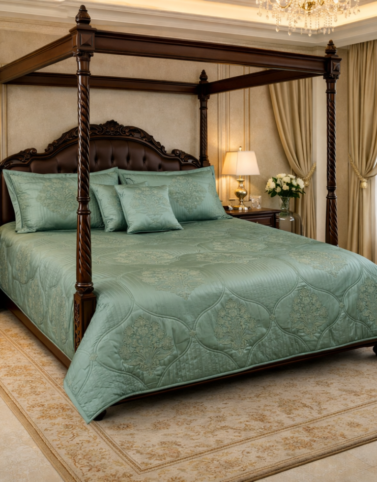 A rich deep-teal bedsheet featuring subtle embossed & embroidered textures and coordinated cushion covers. Sophisticated, serene, and designed for elevated modern bedrooms.