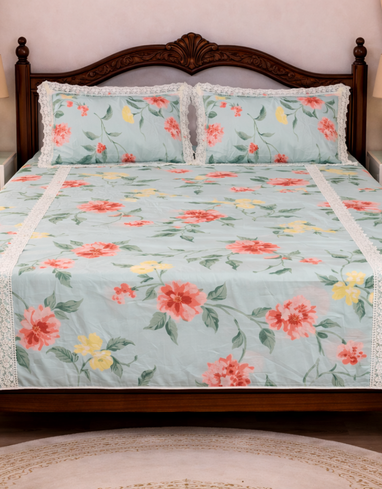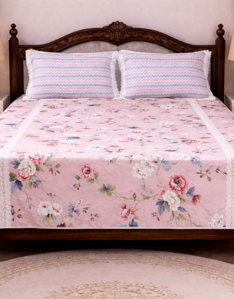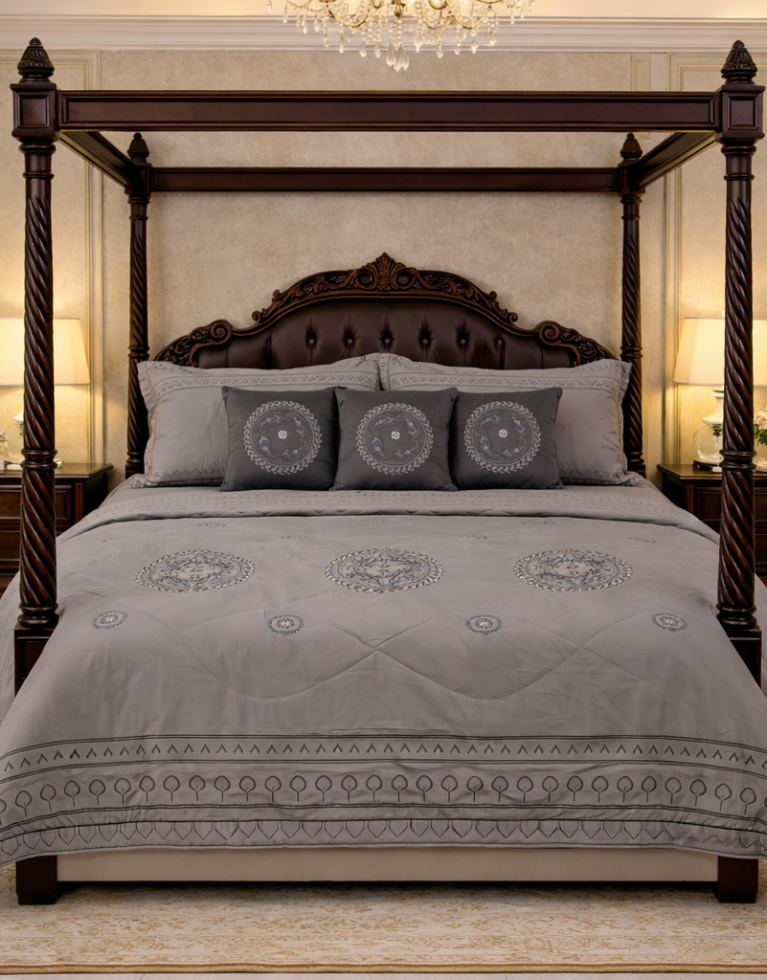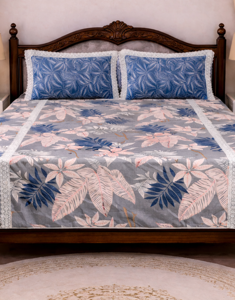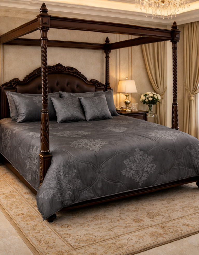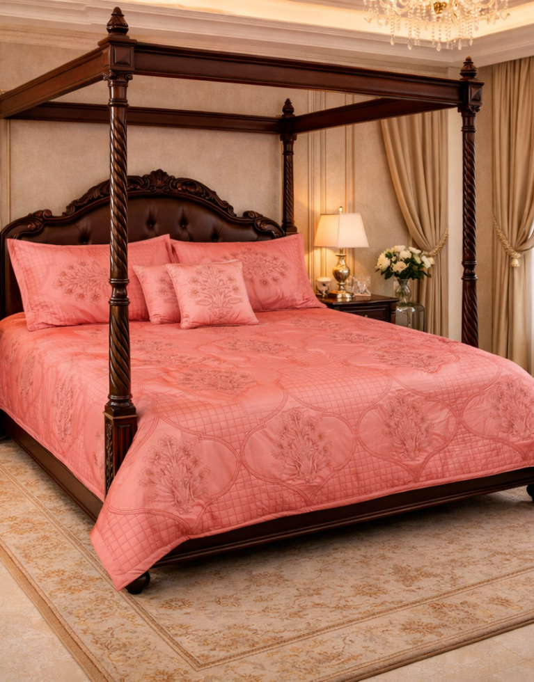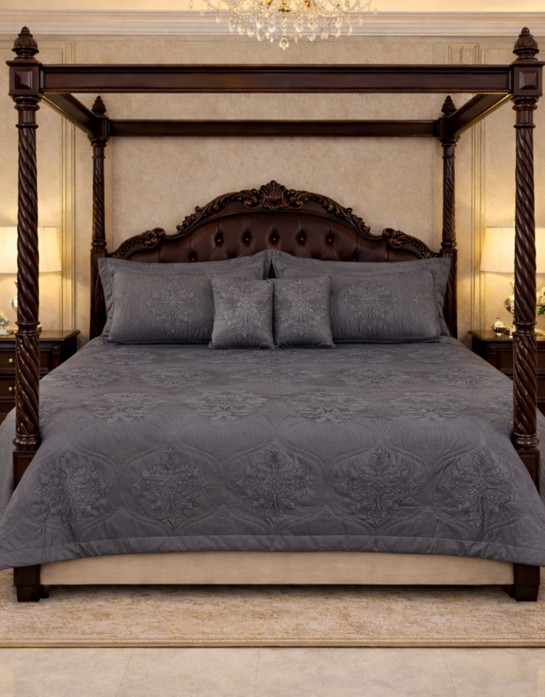 Quilted, embroidered & embossed bedsheet set, featuring a subtle floral texture and a smooth, breathable feel, it offers everyday comfort with a refined, hotel-inspired look. Perfect for modern and neutral interiors.