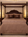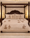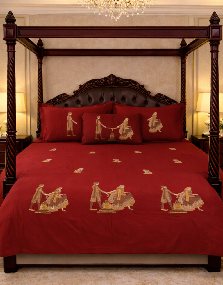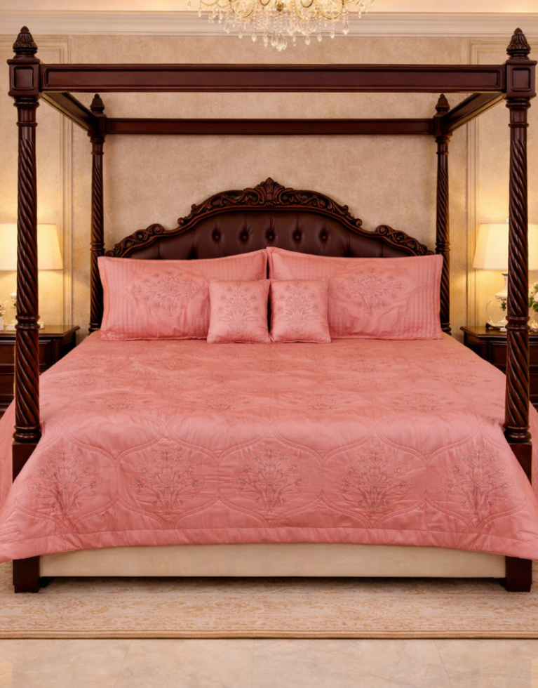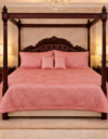 A rich dusky-rose bedsheet featuring subtle embossed & embroidered textures and coordinated cushion covers. Sophisticated, serene, and designed for elevated modern bedrooms.