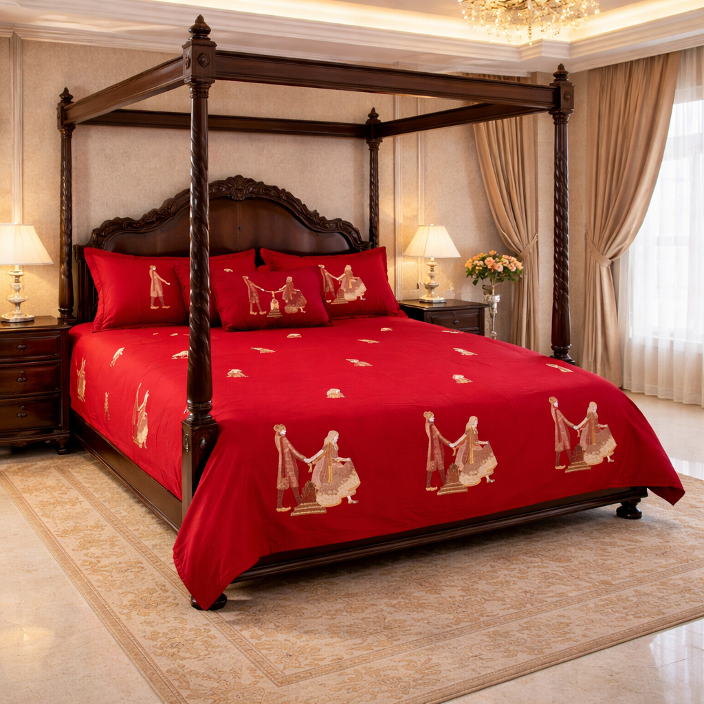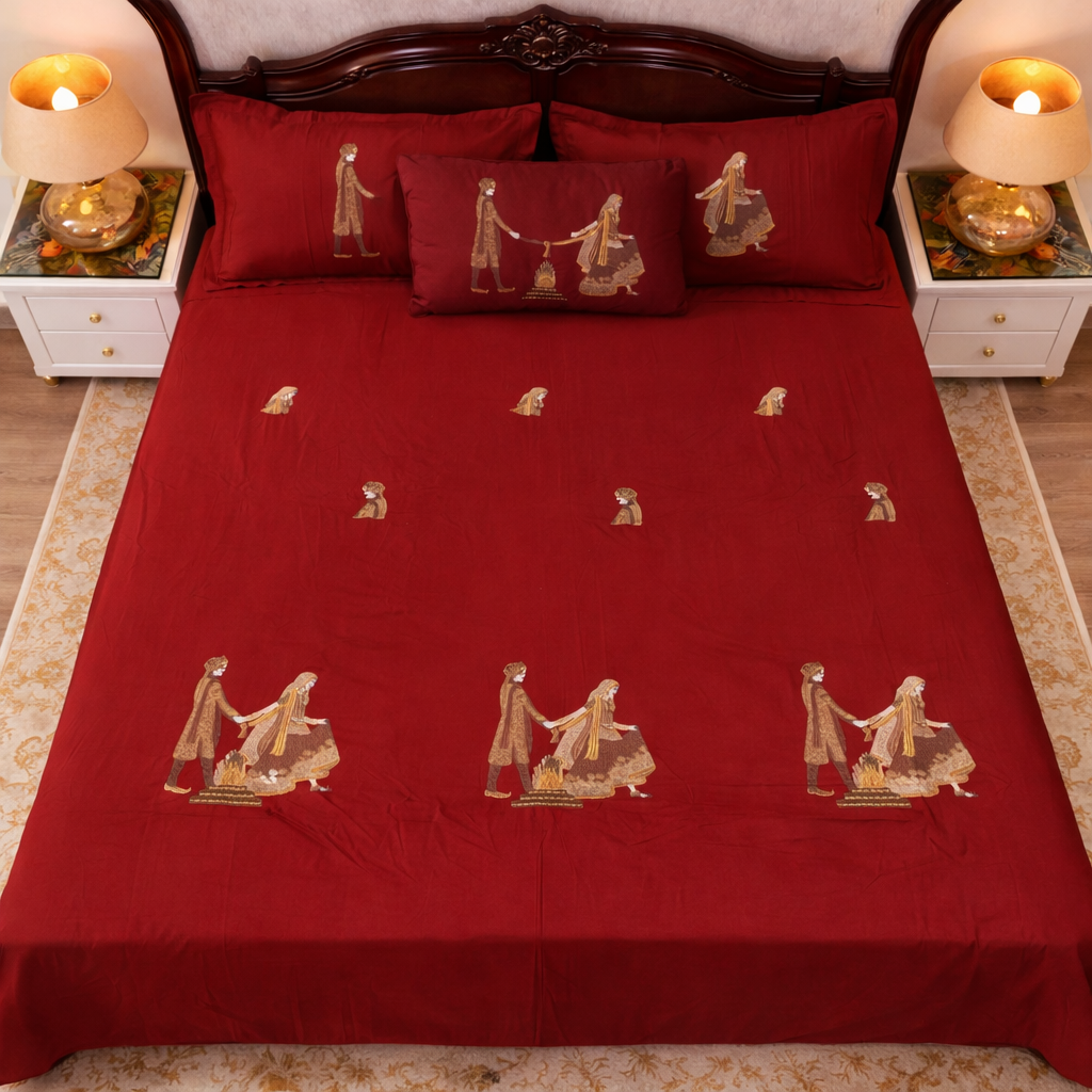 Royale Phere – Hand-Embroidered Wedding Bedsheet Set