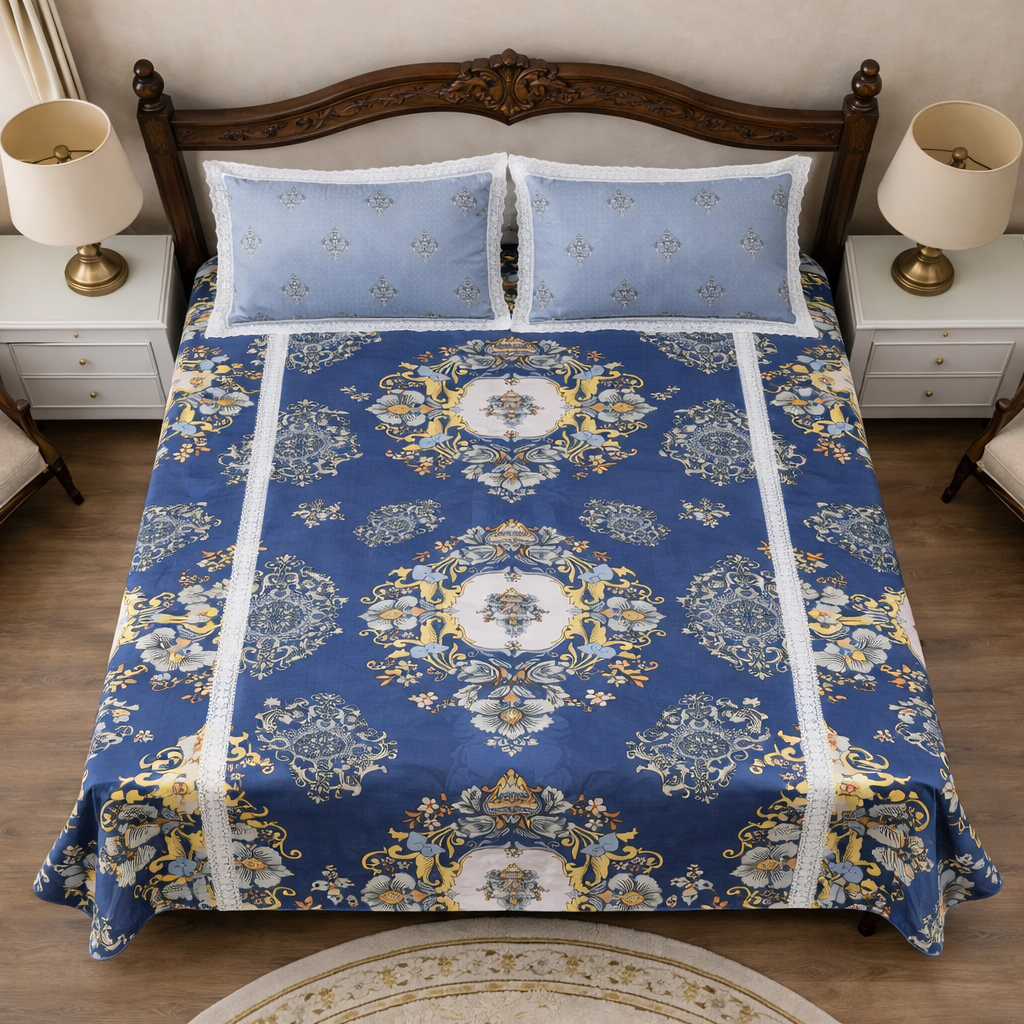ROYAL BLUE ORNAMENTAL BEDSHEET