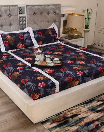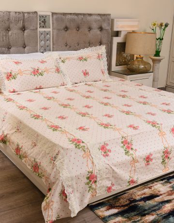 with delicate white lace borders. Elegant, timeless, and designed to elevate everyday bedrooms.